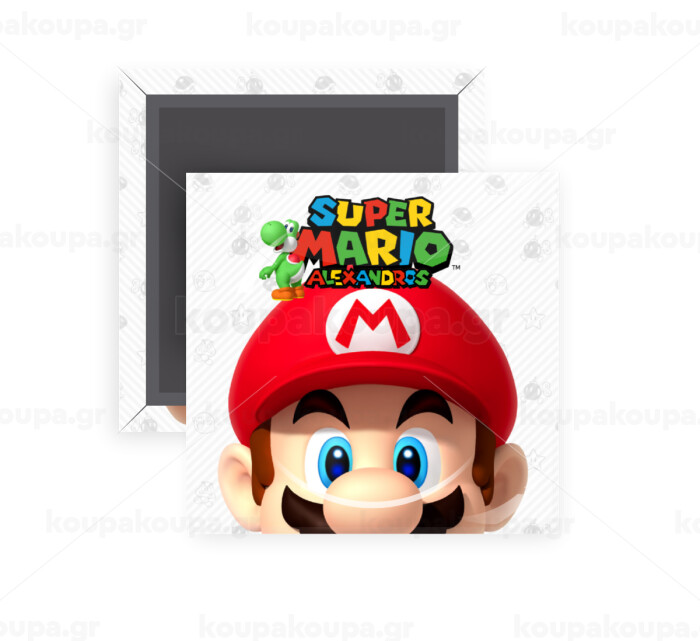 Super mario head, Μαγνητάκι ψυγείου τετράγωνο διάστασης 5x5cm
