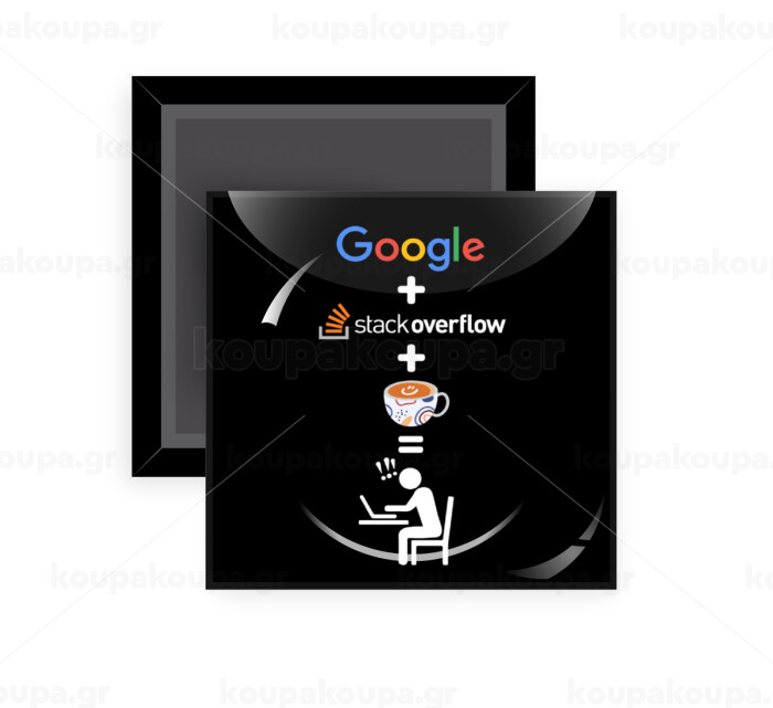 Google + Stack overflow + Coffee, Μαγνητάκι ψυγείου τετράγωνο διάστασης 5x5cm