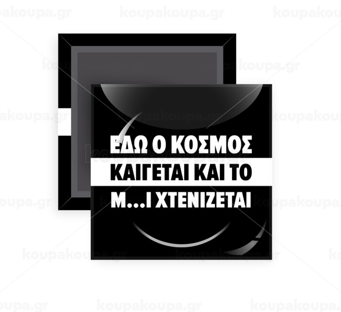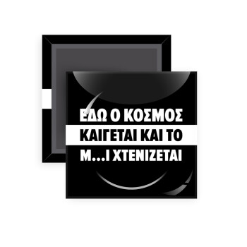 Εδώ ο κόσμος καίγεται και το Μ....Ι χτενίζεται, Μαγνητάκι ψυγείου τετράγωνο διάστασης 5x5cm