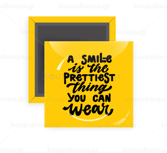 A smile is the prettiest thing you can wear, Μαγνητάκι ψυγείου τετράγωνο διάστασης 5x5cm