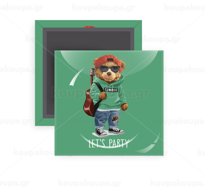Let's Party Bear, Μαγνητάκι ψυγείου τετράγωνο διάστασης 5x5cm