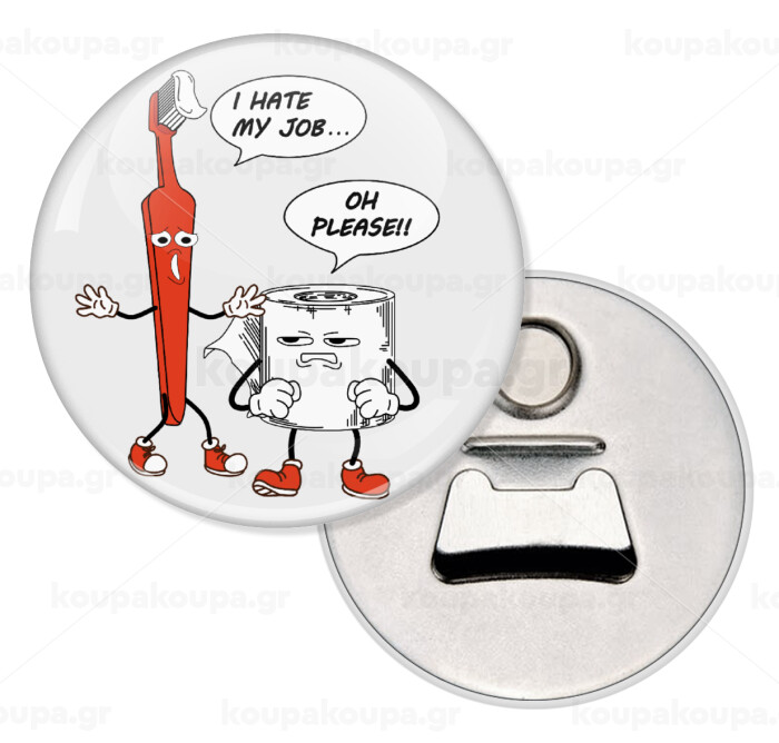 I hate my job, Μαγνητάκι και ανοιχτήρι μπύρας στρογγυλό διάστασης 5,9cm