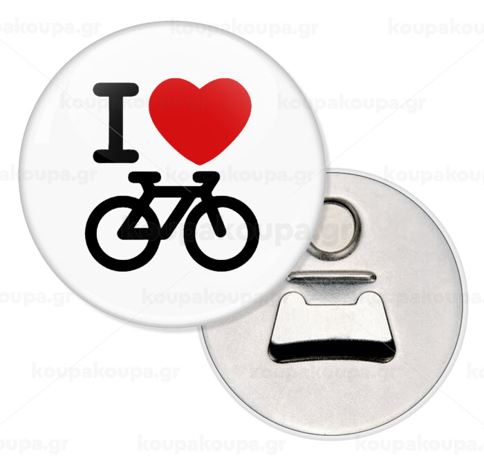 I love Bike, Μαγνητάκι και ανοιχτήρι μπύρας στρογγυλό διάστασης 5,9cm