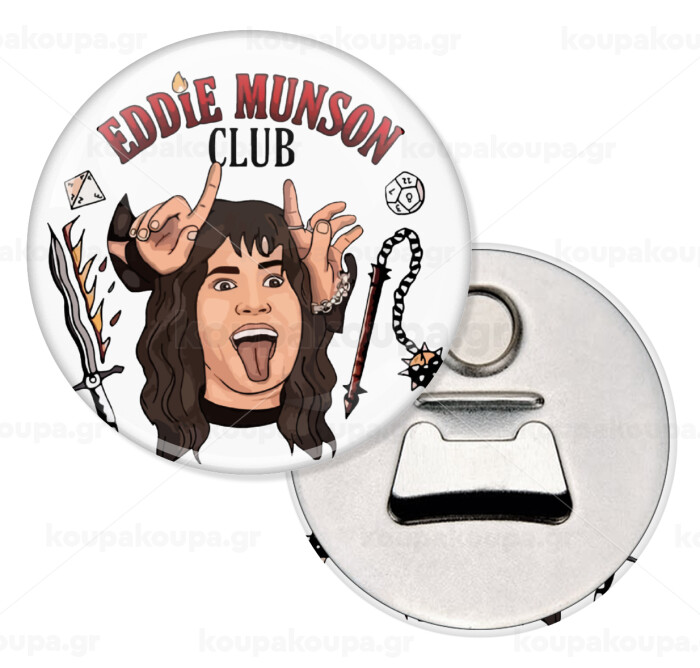 Eddie Munson, Hellfire CLub, Stranger Things, Μαγνητάκι και ανοιχτήρι μπύρας στρογγυλό διάστασης 5,9cm