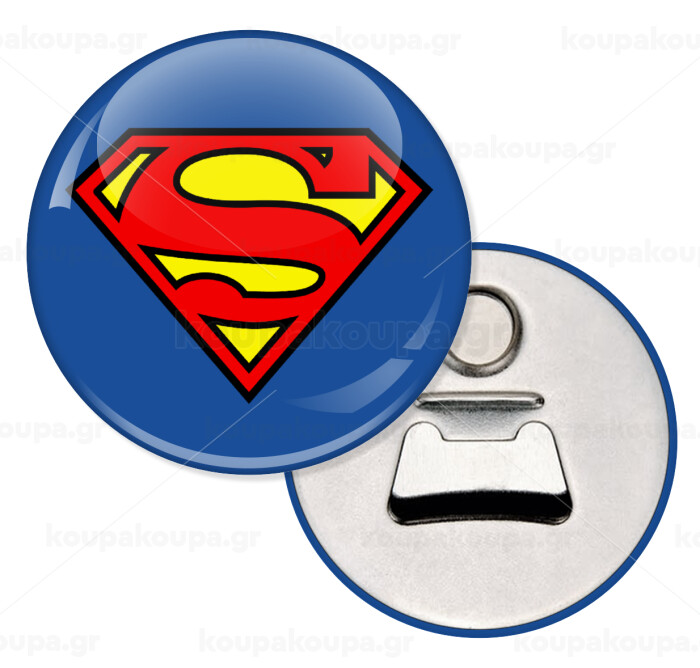 Superman vintage, Μαγνητάκι και ανοιχτήρι μπύρας στρογγυλό διάστασης 5,9cm
