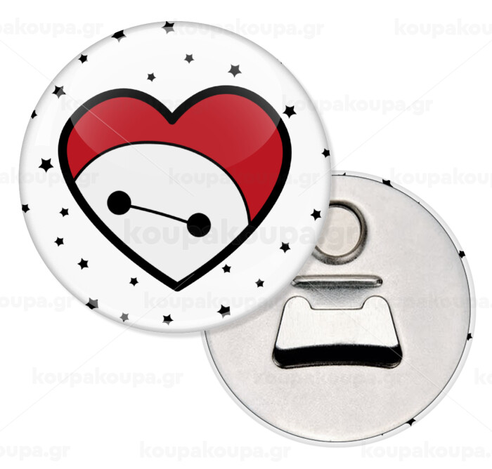 Baymax heart, Μαγνητάκι και ανοιχτήρι μπύρας στρογγυλό διάστασης 5,9cm