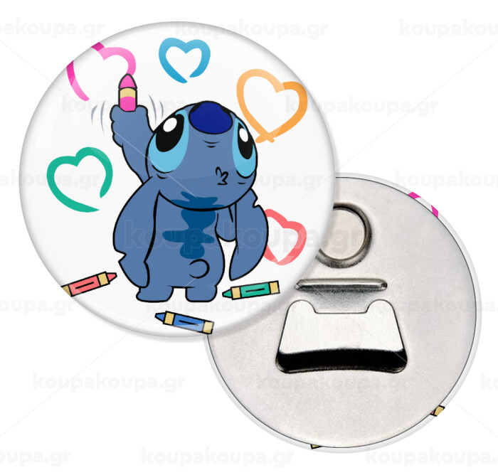 Lilo & Stitch painting, Μαγνητάκι και ανοιχτήρι μπύρας στρογγυλό διάστασης 5,9cm