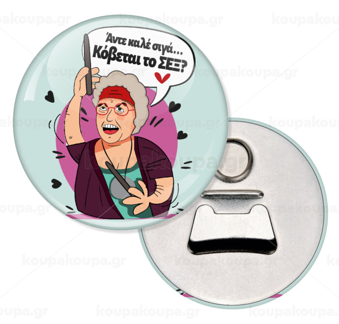 Αντε καλέ, σιγά, κόβεται το σέξ ;, Μαγνητάκι και ανοιχτήρι μπύρας στρογγυλό διάστασης 5,9cm