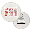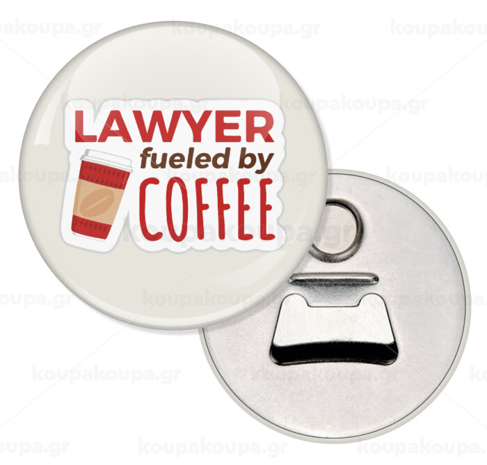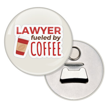 Lawyer fueled by coffee, Μαγνητάκι και ανοιχτήρι μπύρας στρογγυλό διάστασης 5,9cm