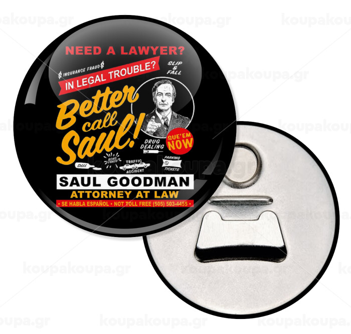 Need A Lawyer Then Call Saul Dks, Μαγνητάκι και ανοιχτήρι μπύρας στρογγυλό διάστασης 5,9cm