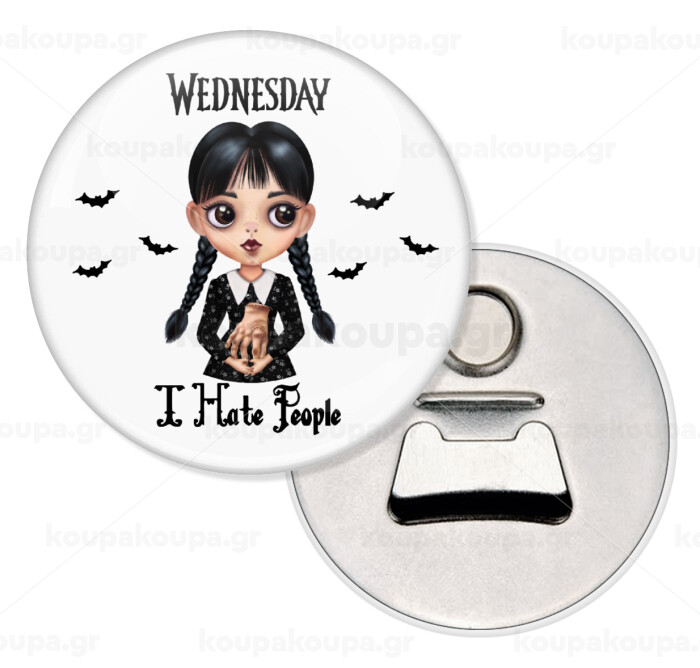 Wednesday Adams, i hate people, Μαγνητάκι και ανοιχτήρι μπύρας στρογγυλό διάστασης 5,9cm