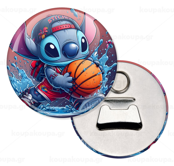 Stitch Basketball, Μαγνητάκι και ανοιχτήρι μπύρας στρογγυλό διάστασης 5,9cm