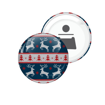 Deer knitted blue, Μαγνητάκι και ανοιχτήρι μπύρας στρογγυλό διάστασης 5,9cm