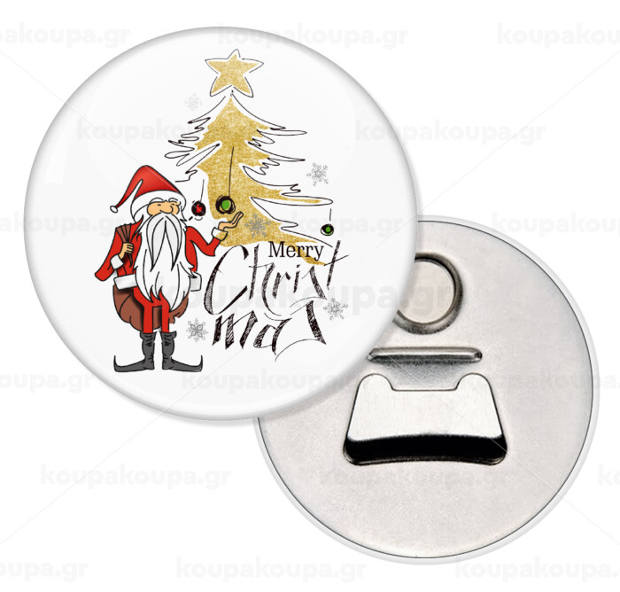 Santa Claus gold, Μαγνητάκι και ανοιχτήρι μπύρας στρογγυλό διάστασης 5,9cm