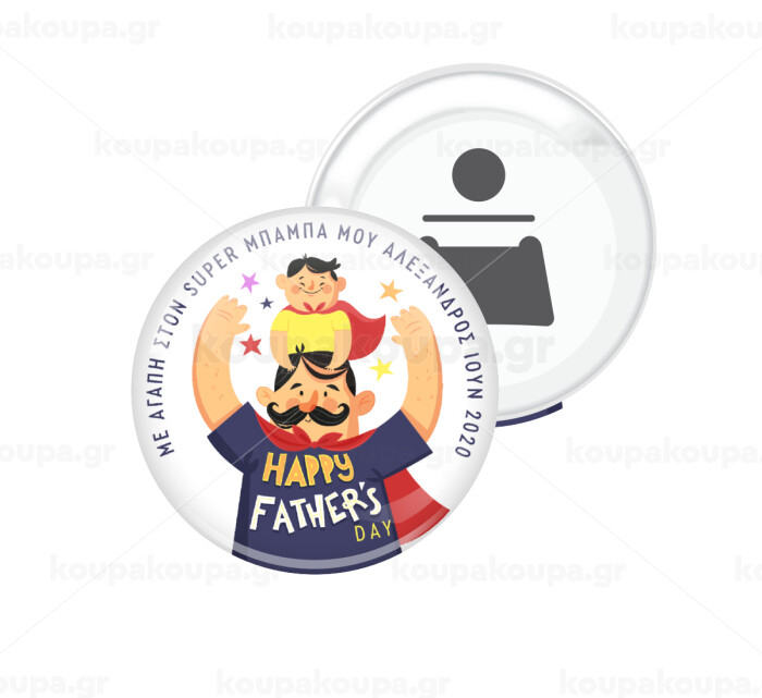 Happy Fathers Day με όνομα, Μαγνητάκι και ανοιχτήρι μπύρας στρογγυλό διάστασης 5,9cm