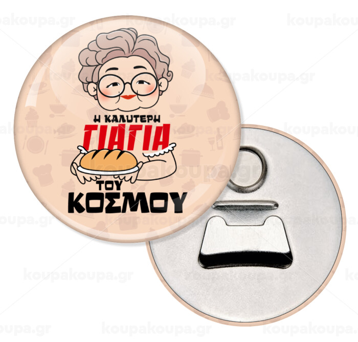 Η καλύτερη γιαγιά του κόσμου!, Μαγνητάκι και ανοιχτήρι μπύρας στρογγυλό διάστασης 5,9cm