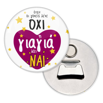 Όταν οι γονείς λένε ΟΧΙ, η γιαγιά λέει ΝΑΙ, Μαγνητάκι και ανοιχτήρι μπύρας στρογγυλό διάστασης 5,9cm
