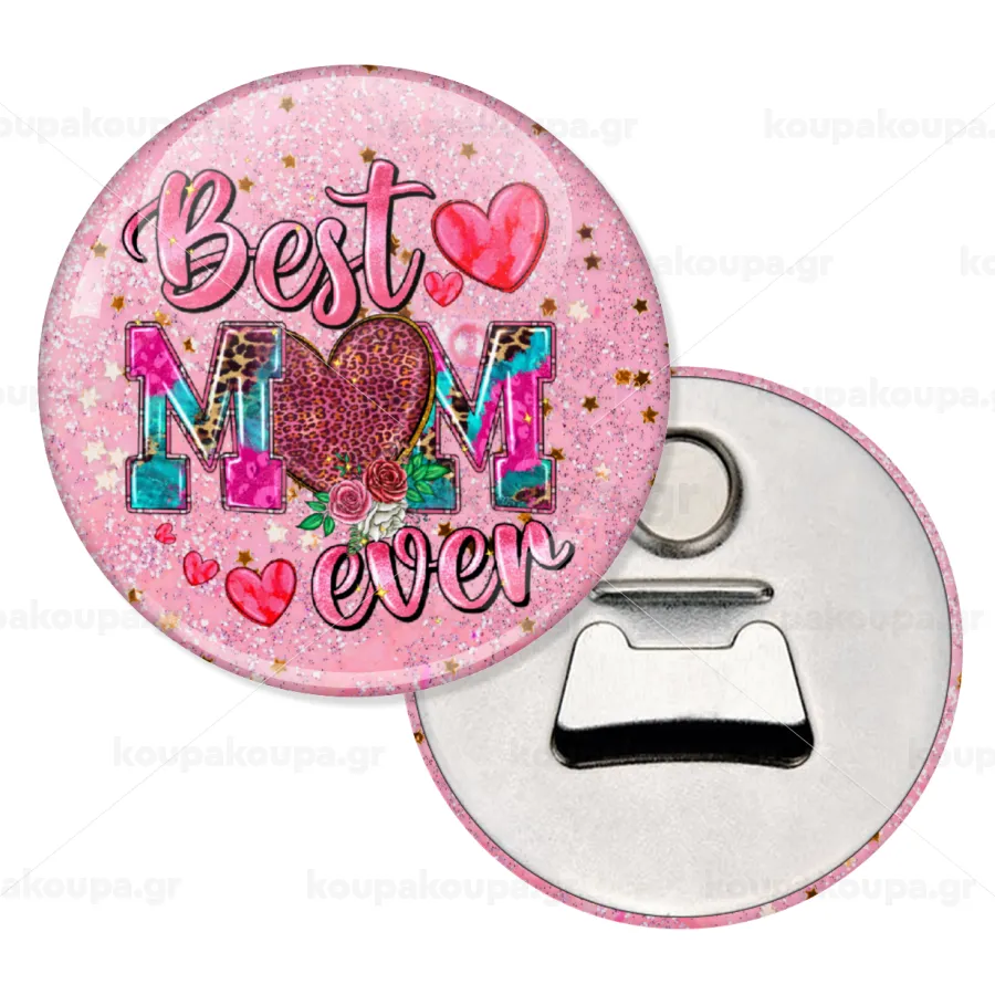 Best mom ever Mother's Day pink, Μαγνητάκι και ανοιχτήρι μπύρας στρογγυλό διάστασης 5,9cm
