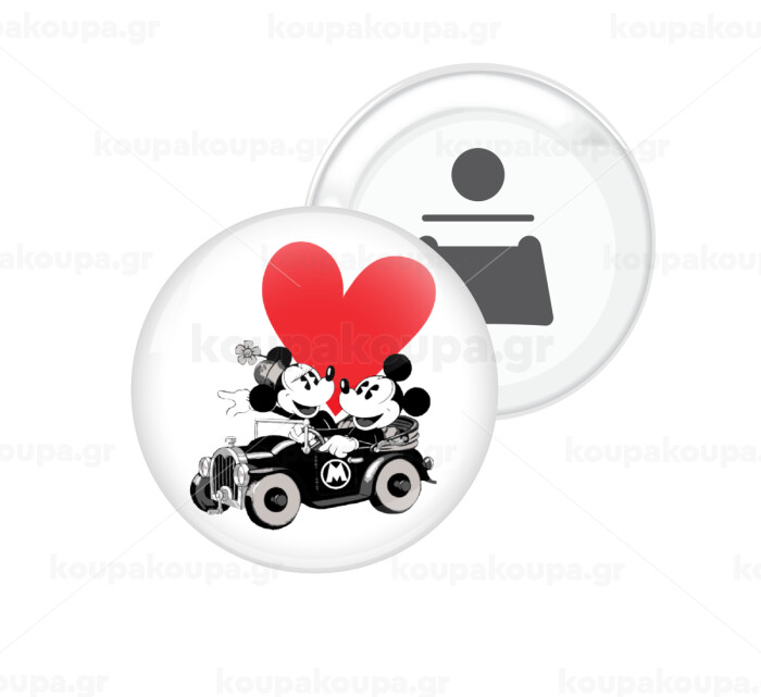 Mickey & Minnie love car, Μαγνητάκι και ανοιχτήρι μπύρας στρογγυλό διάστασης 5,9cm