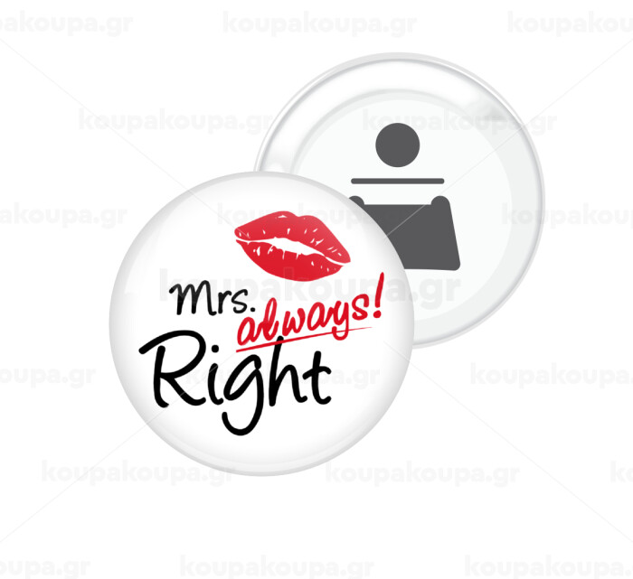Mrs always right kiss, Μαγνητάκι και ανοιχτήρι μπύρας στρογγυλό διάστασης 5,9cm