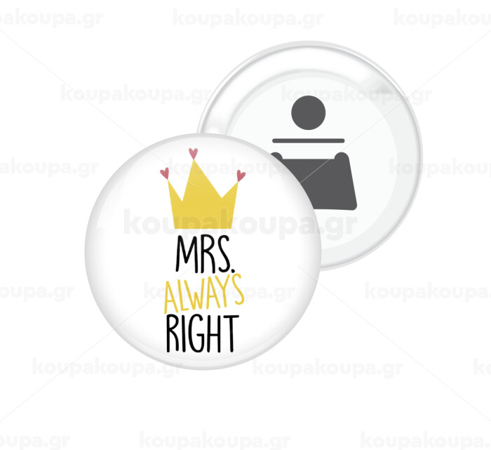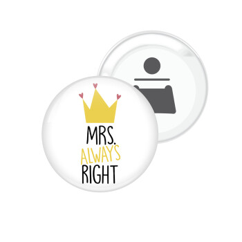 Mrs "Always" right, Μαγνητάκι και ανοιχτήρι μπύρας στρογγυλό διάστασης 5,9cm