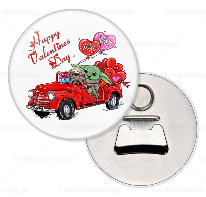 Yoda, happy valentines day (xoxo), Μαγνητάκι και ανοιχτήρι μπύρας στρογγυλό διάστασης 5,9cm