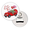 Round magnet and beer opener, shiny with a metallic back, the magnets can be placed on a refrigerator or any other metallic surface. Great durability over time due to the plasticization of the subject.