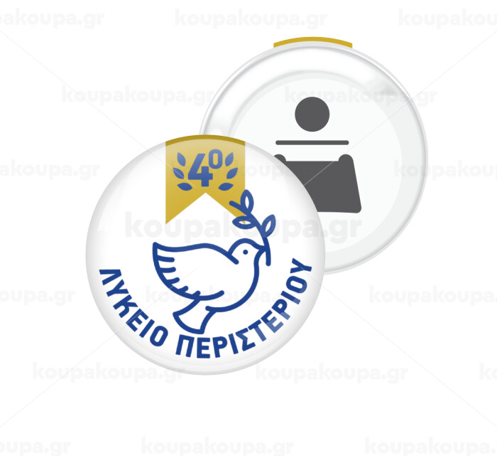 Έμβλημα Σχολικό μπλε/χρυσό περιστέρι, Μαγνητάκι και ανοιχτήρι μπύρας στρογγυλό διάστασης 5,9cm