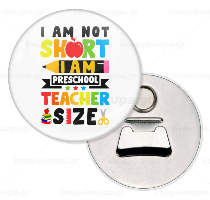 I Am Not Short I Am Preschool Teacher Size, Μαγνητάκι και ανοιχτήρι μπύρας στρογγυλό διάστασης 5,9cm