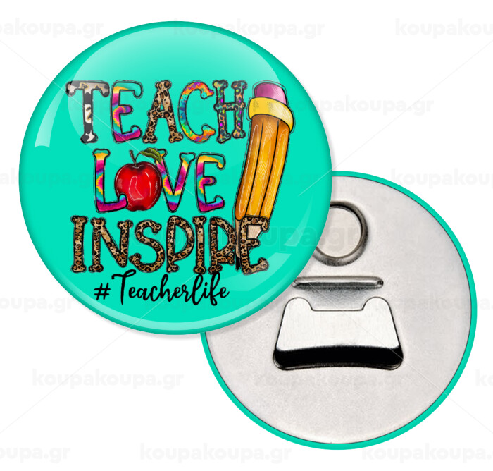 Teach, Love, Inspire, Μαγνητάκι και ανοιχτήρι μπύρας στρογγυλό διάστασης 5,9cm
