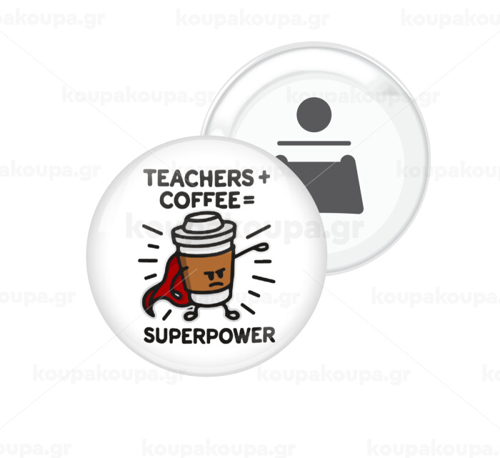 Teacher Coffee Super Power, Μαγνητάκι και ανοιχτήρι μπύρας στρογγυλό διάστασης 5,9cm