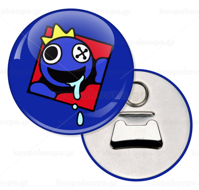 Blue, Rainbow friends, Μαγνητάκι και ανοιχτήρι μπύρας στρογγυλό διάστασης 5,9cm