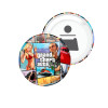 Round magnet and beer opener, shiny with a metallic back, the magnets can be placed on a refrigerator or any other metallic surface. Great durability over time due to the plasticization of the subject.