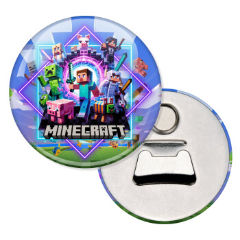 Minecraft Nether Portal, Μαγνητάκι και ανοιχτήρι μπύρας στρογγυλό διάστασης 5,9cm