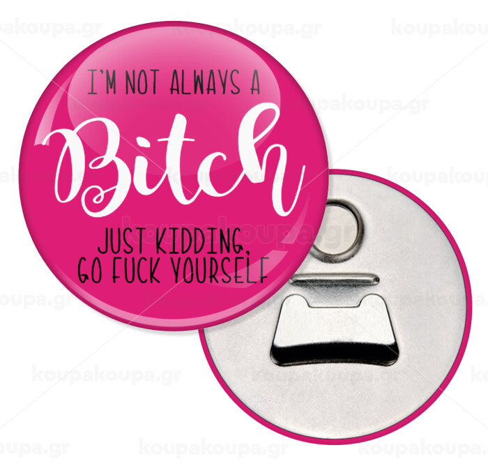 I'm not always a bitch, just kidding go f..k yourself , Μαγνητάκι και ανοιχτήρι μπύρας στρογγυλό διάστασης 5,9cm