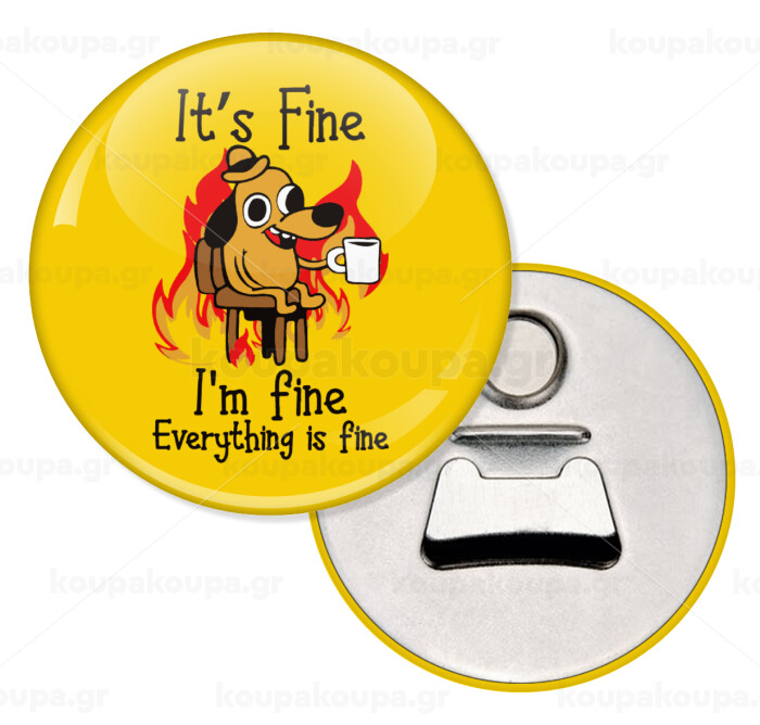 It's Fine I'm Fine Everything Is Fine, Μαγνητάκι και ανοιχτήρι μπύρας στρογγυλό διάστασης 5,9cm