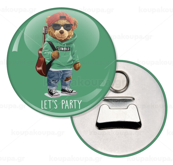 Let's Party Bear, Μαγνητάκι και ανοιχτήρι μπύρας στρογγυλό διάστασης 5,9cm