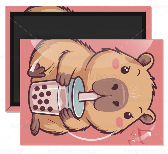 Capybara Bubble Tea, Ορθογώνιο μαγνητάκι ψυγείου διάστασης 9x6cm