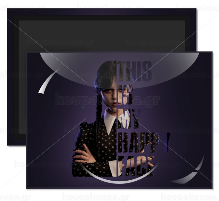 Wednesday, This is my happy face, Ορθογώνιο μαγνητάκι ψυγείου διάστασης 9x6cm