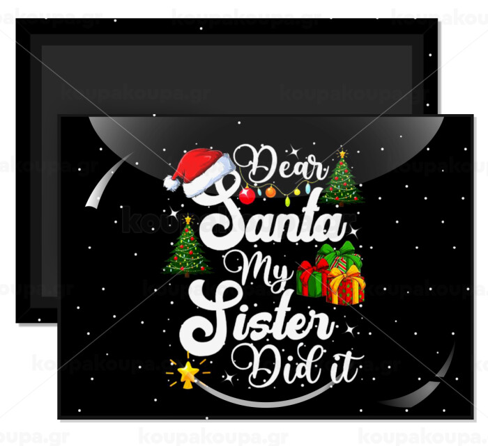 Dear santa my Sister Did it, Ορθογώνιο μαγνητάκι ψυγείου διάστασης 9x6cm