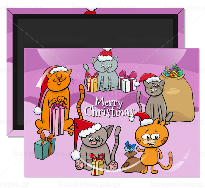 Merry Christmas Cats, Ορθογώνιο μαγνητάκι ψυγείου διάστασης 9x6cm