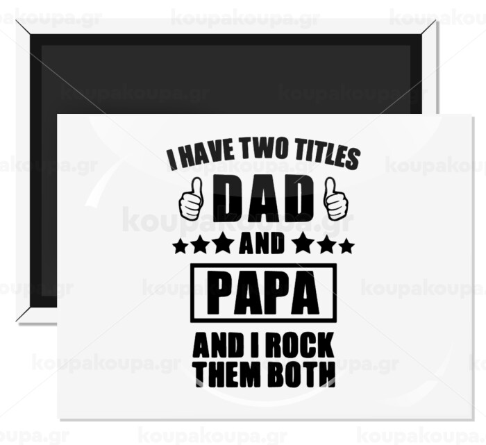 I have two title, DAD & PAPA, Ορθογώνιο μαγνητάκι ψυγείου διάστασης 9x6cm