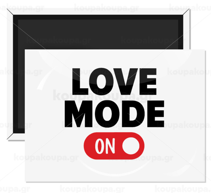 LOVE MODE ON, Ορθογώνιο μαγνητάκι ψυγείου διάστασης 9x6cm