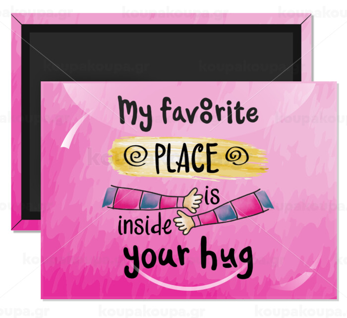 My favorite place is inside your HUG, Ορθογώνιο μαγνητάκι ψυγείου διάστασης 9x6cm