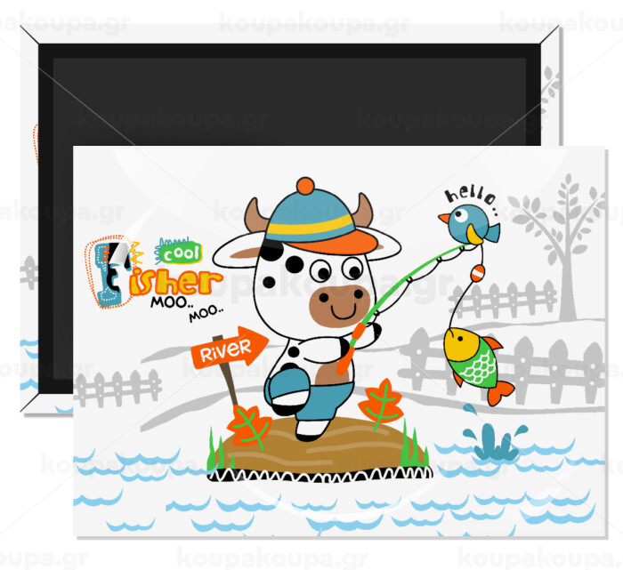 Kids Fisherman, Ορθογώνιο μαγνητάκι ψυγείου διάστασης 9x6cm
