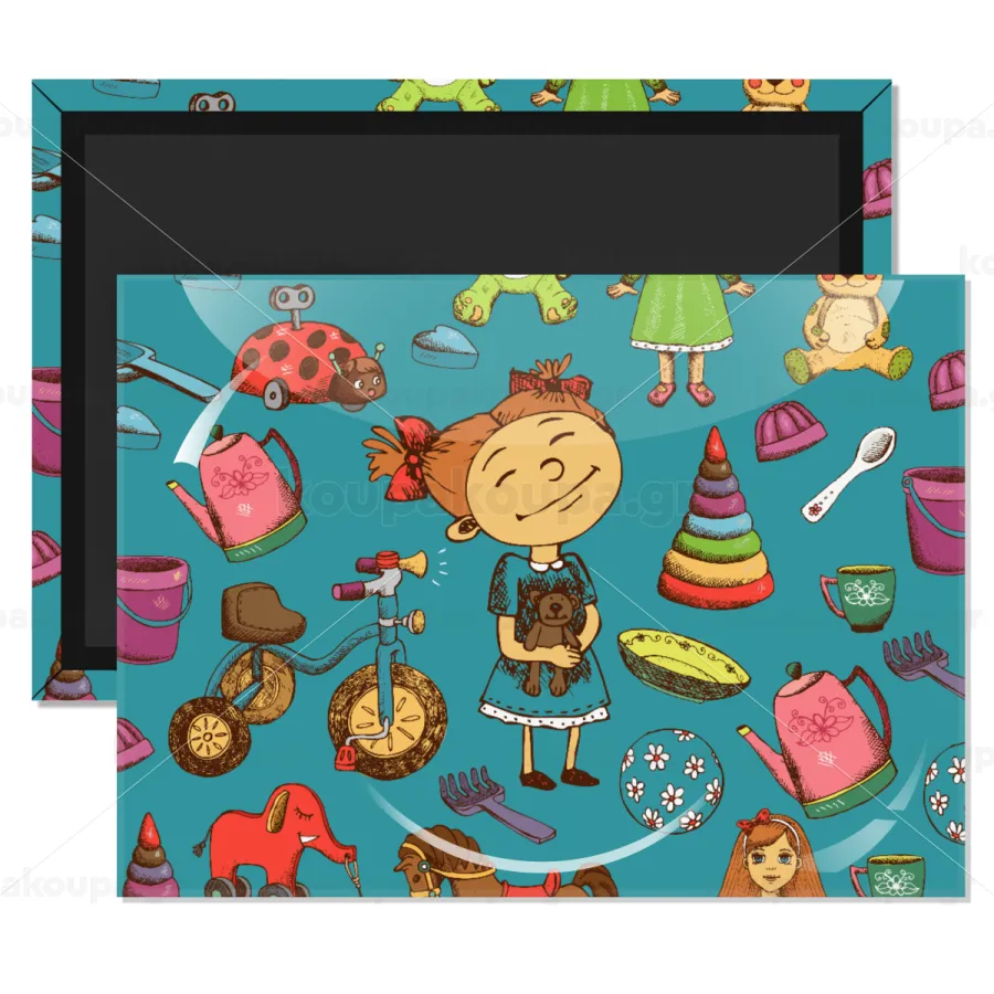 Toys Girl, Ορθογώνιο μαγνητάκι ψυγείου διάστασης 9x6cm