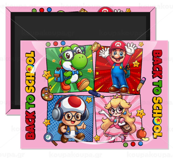 Back to the School Mario & Friends, Ορθογώνιο μαγνητάκι ψυγείου διάστασης 9x6cm