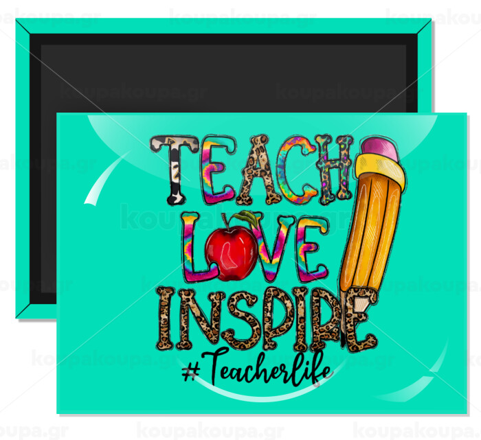 Teach, Love, Inspire, Ορθογώνιο μαγνητάκι ψυγείου διάστασης 9x6cm