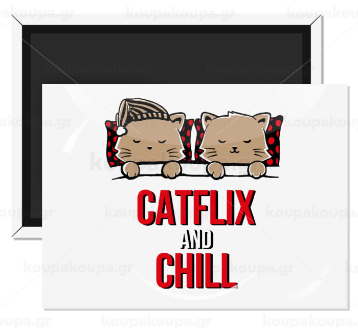 Catflix and Chill, Ορθογώνιο μαγνητάκι ψυγείου διάστασης 9x6cm