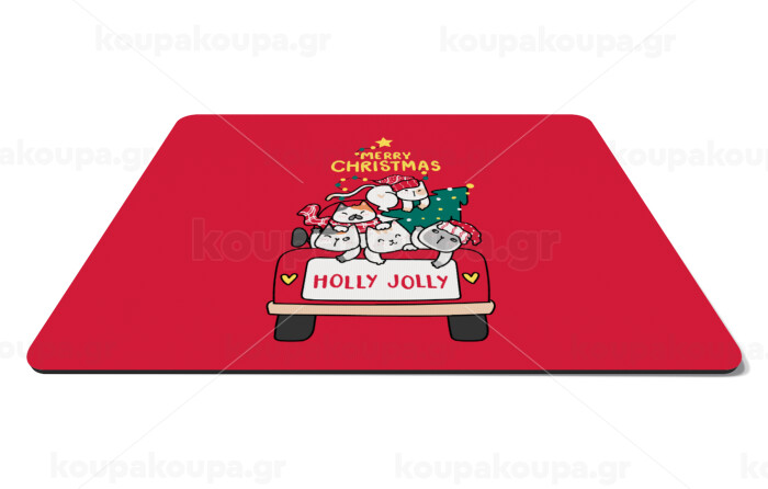 Merry Christmas cats in car, Mousepad rect 27x19cm